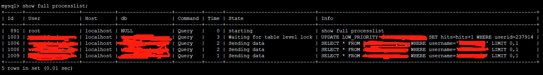 mysql> show full processlist;