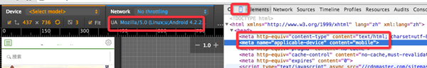 開發(fā)完成后,需要先在測試機上驗收。可以用 Google 瀏覽器來模擬 Baiduspider 來檢查是否添加正確, 如圖所示, 是檢查 Baiduspider Mobile UA 的效果的
