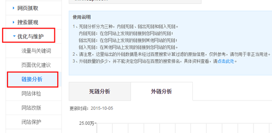 針對惡意外鏈?zhǔn)录掖伟l(fā)生,站長平臺發(fā)布了“外鏈分析”的工具,讓各位站長可以明確的知曉到底有哪些站放了我們網(wǎng)站的外鏈。各位可以在站長平臺查看: