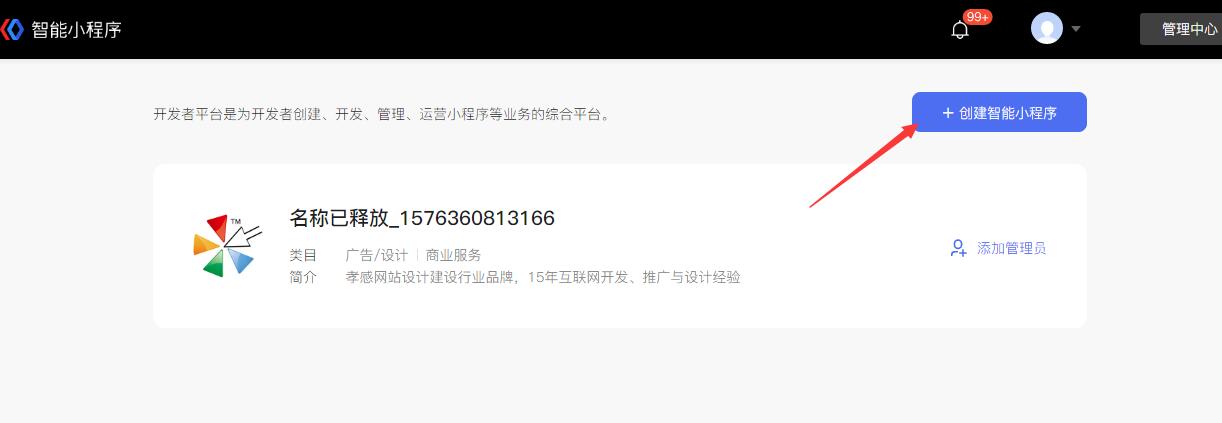 (1)進(jìn)入管理中心,點(diǎn)擊“創(chuàng)建智能小程序”