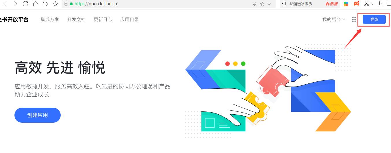 (1)登錄飛書(shū)小程序官網(wǎng) https://open.feishu.cn/ 點(diǎn)擊右上角“登錄”,“立即注冊(cè)”,進(jìn)行帳號(hào)注冊(cè)。