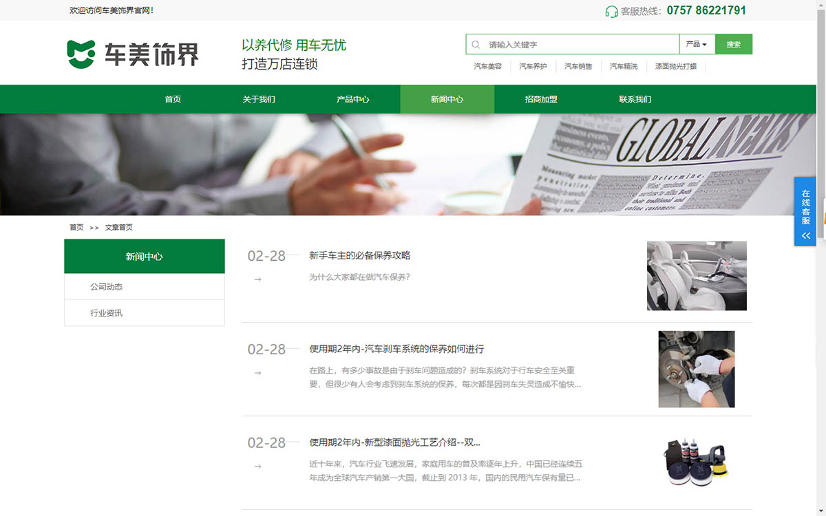 風信網絡響應式建站某汽車服務有限公司業(yè)務涵蓋全能精洗、星級保養(yǎng)、美容裝飾、精品零售等汽車后市場一站式服務,首創(chuàng)“高質低價+會員裂變+行業(yè)聯(lián)盟”的全新商業(yè)模式,秉承“五心級”服務的理念,致力幫助千萬車主更具性價比地達成愛車美容養(yǎng)護目標,實現(xiàn)“以養(yǎng)代修,用車無憂”。